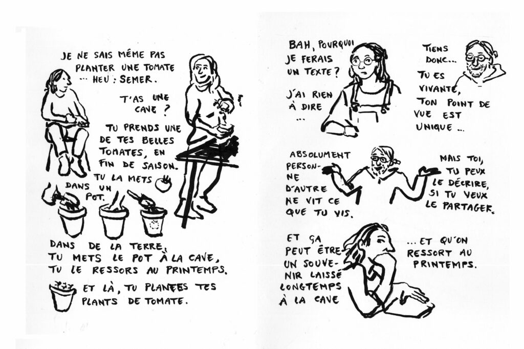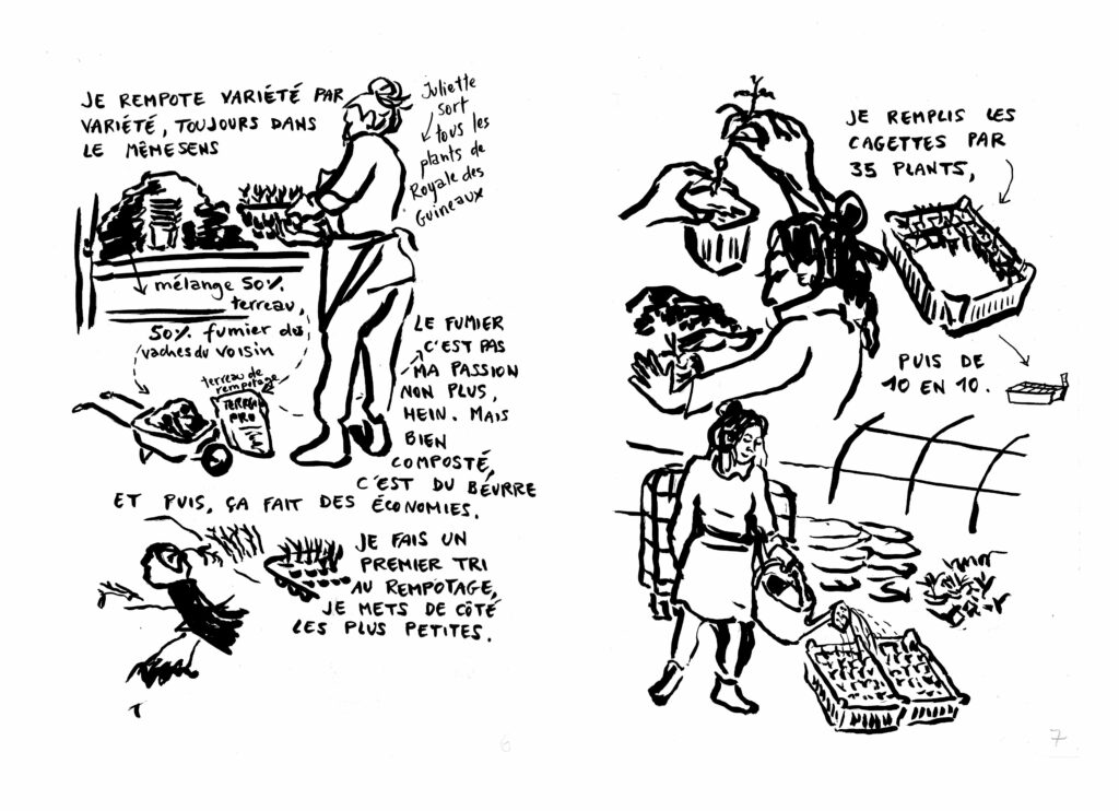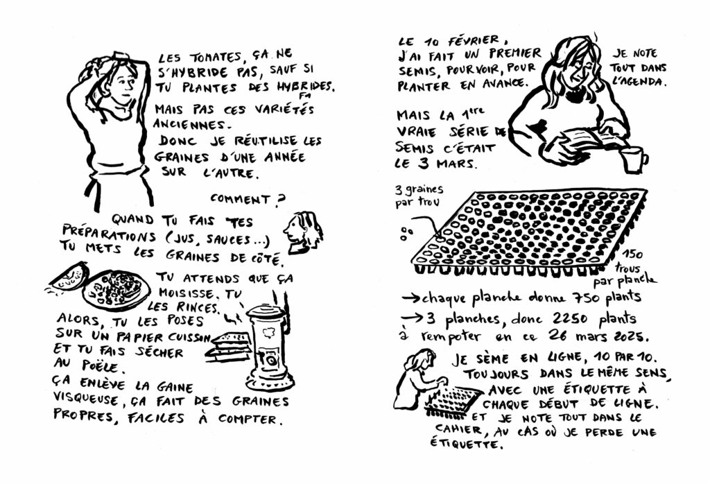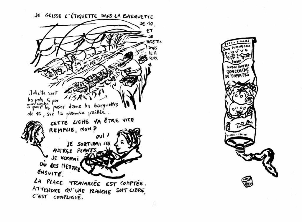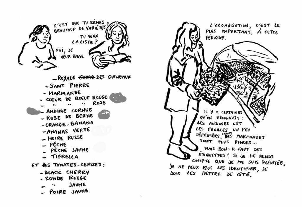 Mais bon, on est surtout là pour les tomates. Pages brutes dessinées et écrites à la Métive au retour de la matinée.